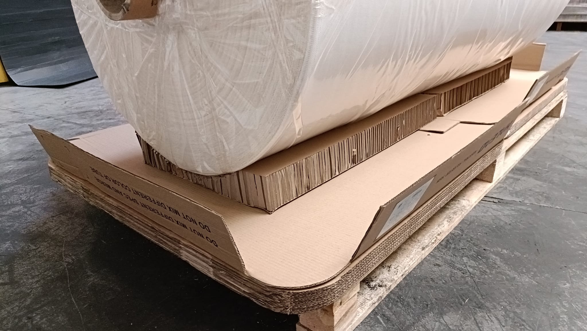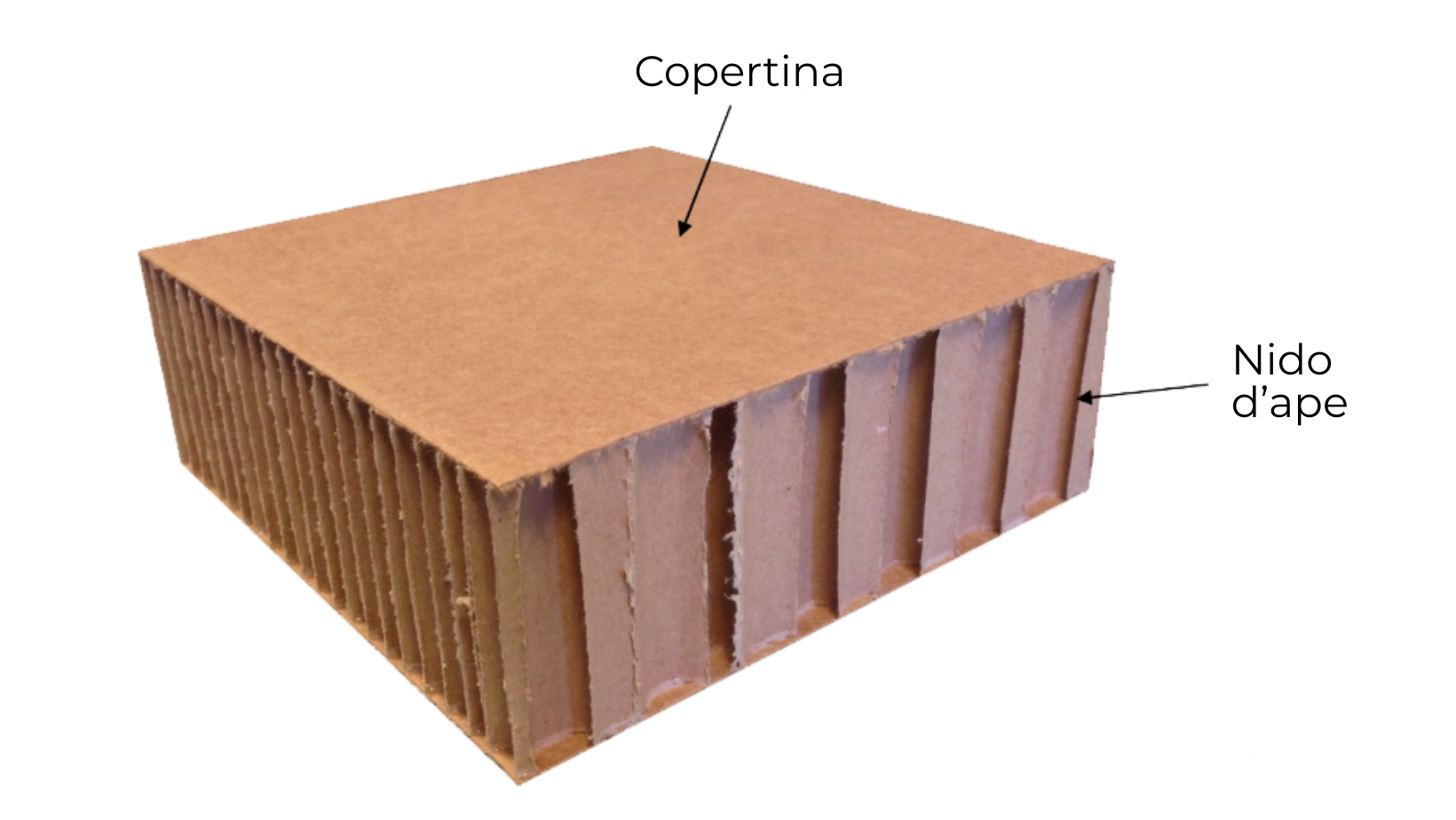 Il pannello in cartone alveolare viene realizzato in base agli usi e alle dimensioni richieste. La sua produzione prevede l’accoppiamento tra il nido d’ape steso e le due copertine (fogli di carta che convergono sopra e sotto il nido d’ape) e che si incollano assieme al nido formando un “sandwitch” uniforme.